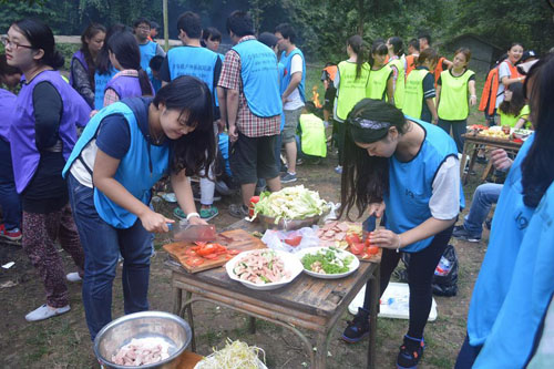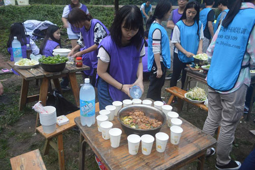 女生们都还挺贤惠的嘛,摆桌开吃哦